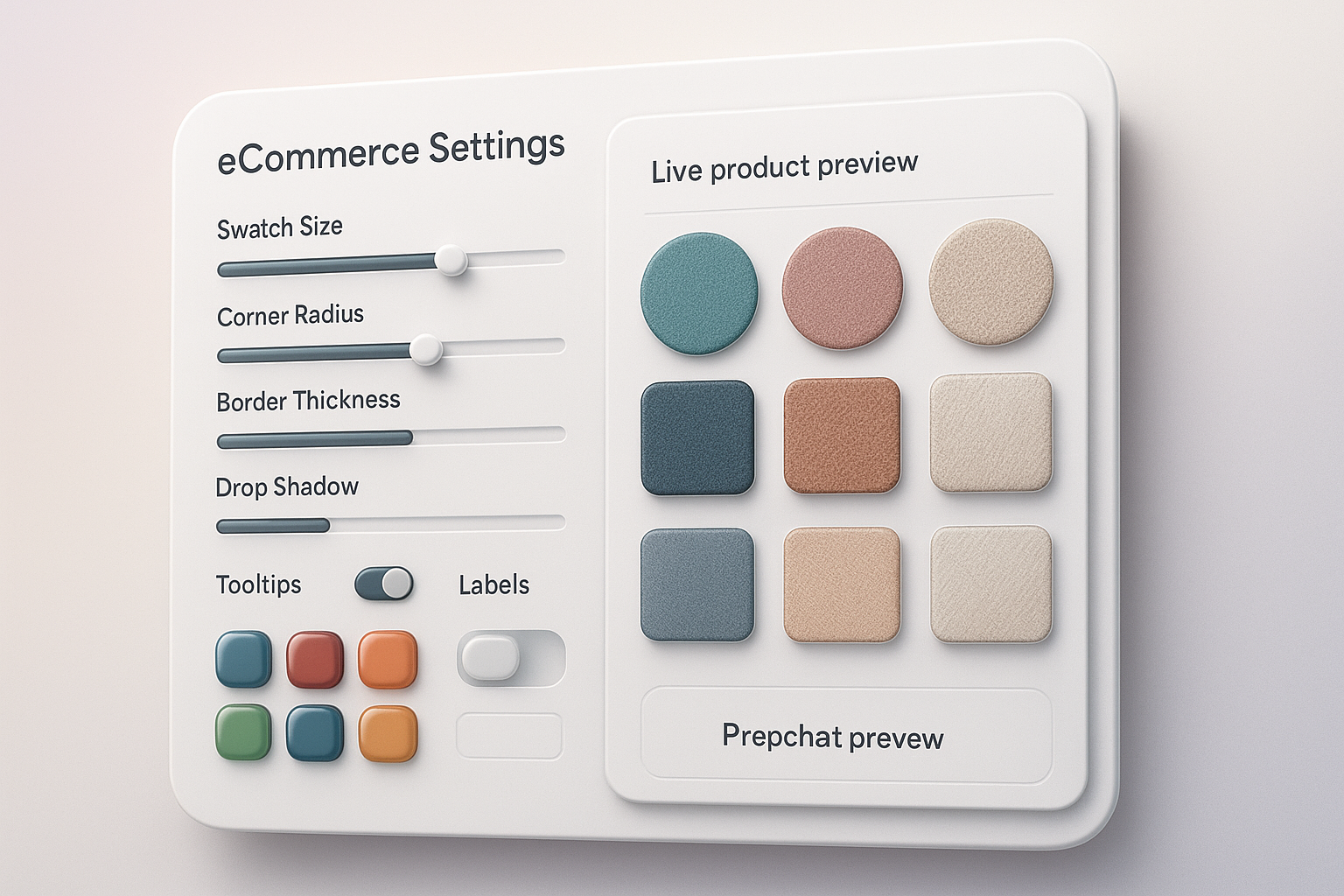 Image-based: Prefer exact fabric/pattern previews? Use product images or custom swatch images for precise visual matches.